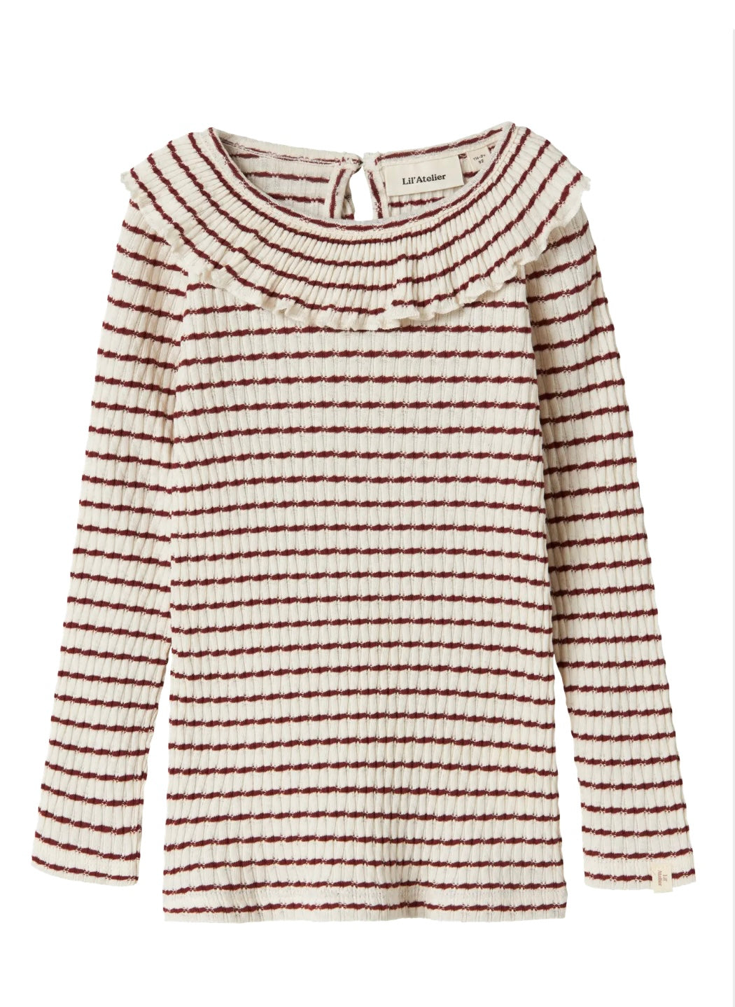 Vit topp med vinröda ränder i mjukt, töjbart material. 100% ekologisk bomull